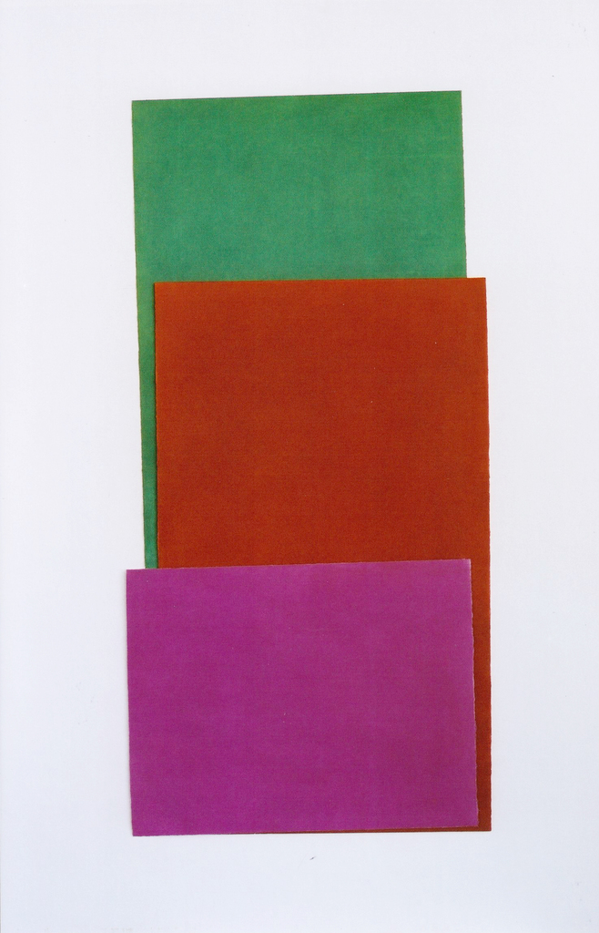 Dorothea Frigo "Balance" (2012) 5 Tonbandzeichnungen in Rahmen 30x40 (weiße Rahmen) Arbeiten im Passepartout ca. 19,0x29 cm Alle Tonbandzeichnungen mit einem farbigen Quadrat Signiert und datiert Vorderseite